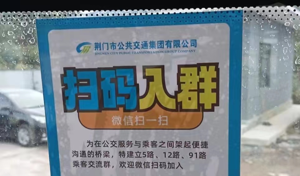 “為在公交服務(wù)與乘客之間架起便捷溝通的橋梁,特建立5路、12路、91路乘客交流群,歡迎微信掃碼加入?!苯眨谐丝驮诔俗?2路公交車時新奇地發(fā)現(xiàn),車窗上貼出了一個名為“掃碼入群”的微信二維碼(如圖)。