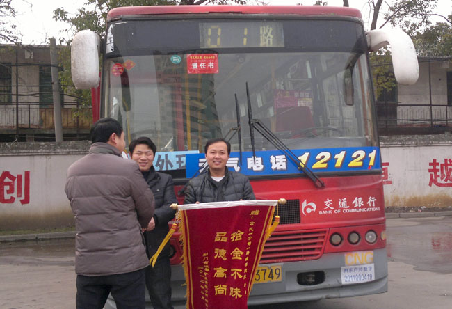 2月15日,荊門市銀都礦業(yè)有限公司總經(jīng)理鄒詩(shī)發(fā)等一行3人專程來(lái)到市公交一公司,向一公司負(fù)責(zé)人張忠林贈(zèng)送了一面寫著“拾金不昧、品質(zhì)高尚”的錦旗,專門感謝1路駕駛員李想拾到其遺失在公交車上15萬(wàn)貨款。